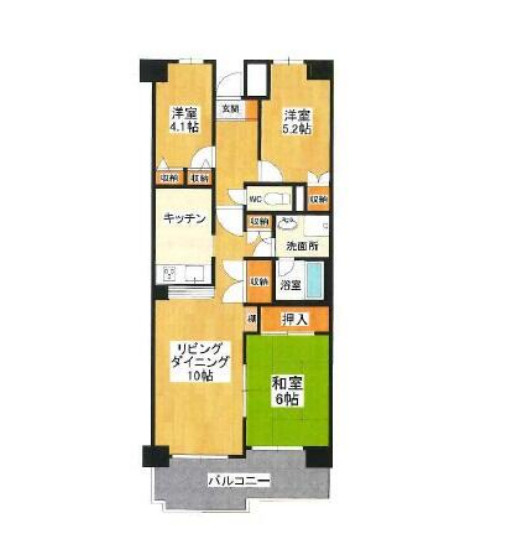 LD 10.0帖/洋室 5.2帖/洋室 4.1帖/和室 6.0帖 - 向き